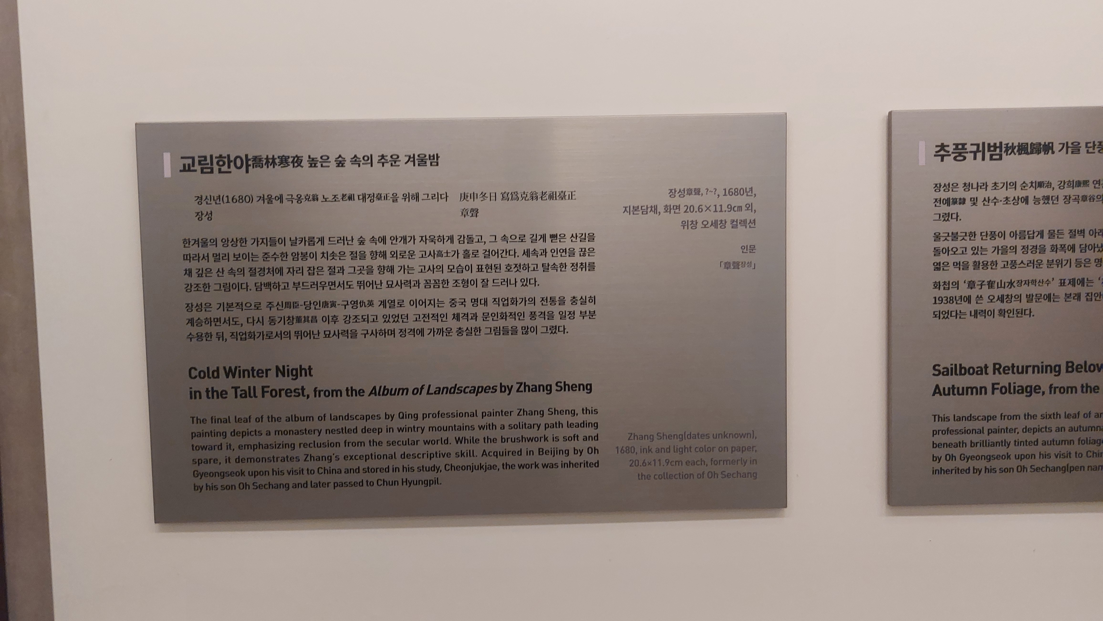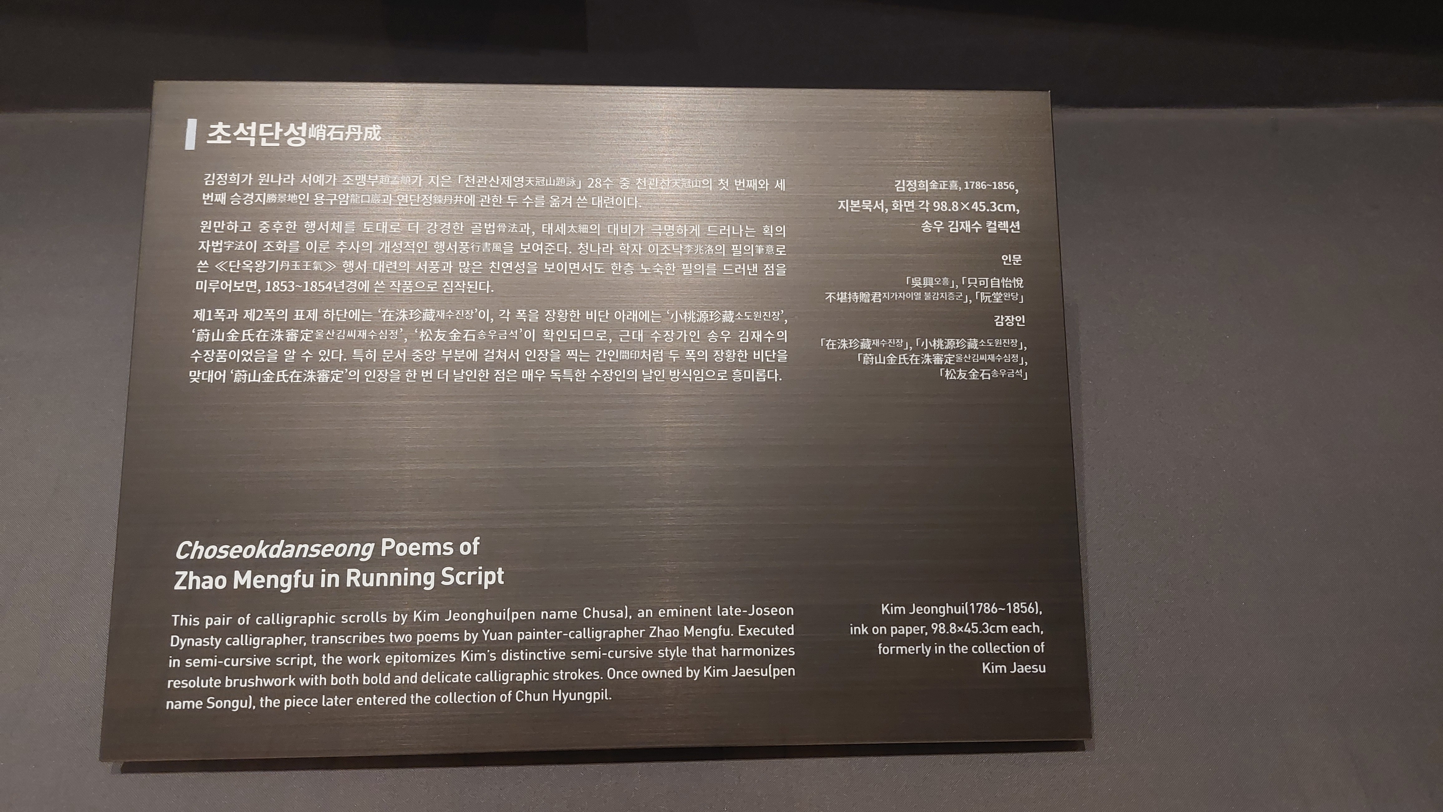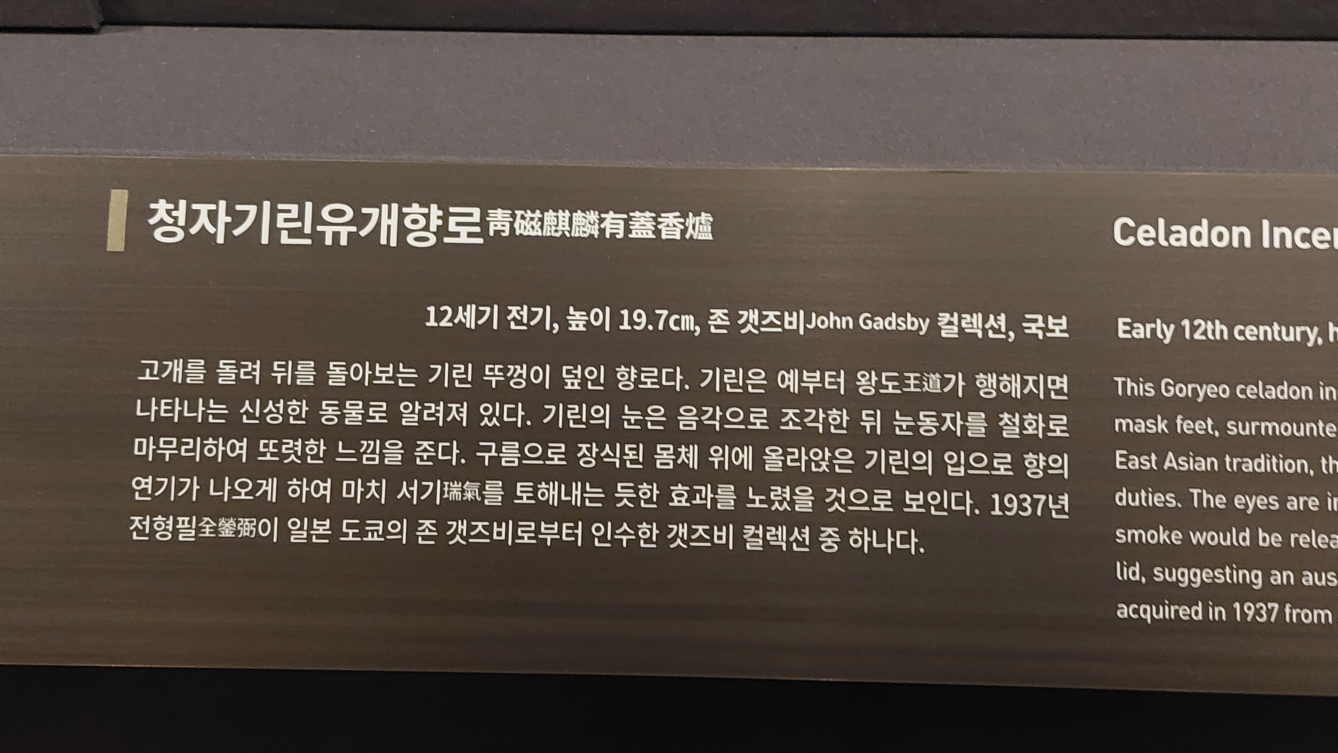 친구와 둘이서 오랫만에 성북동 소재 간송미술관을 찾았다.오세창, 존 갯즈비의 컬렉션들이 간송의 손으로 넘어와 '보화비장'이란 제목을 달고 전시를 하고 있었다.소장가인 존 갯즈비의 컬렉션 처분 소식에 기와집 40채의 값에 그의 컬렉션 도자기 20여점을 사들여 우리 문화재를 지켜낸 간송의 노력은 국보급이다.완당 김정희 선생의 대련,'대팽고회'는 <완당평전>에서 익히 본 서화로 실물을 보니 눈이 번쩍한다.갯즈비 컬렉션이었던 청자기린유개향로와 원숭이연적은 일품이다.두 점 모두 국보다.간송선생의 문화보국에 대한 굳은 신념을 느끼며 관람한다.