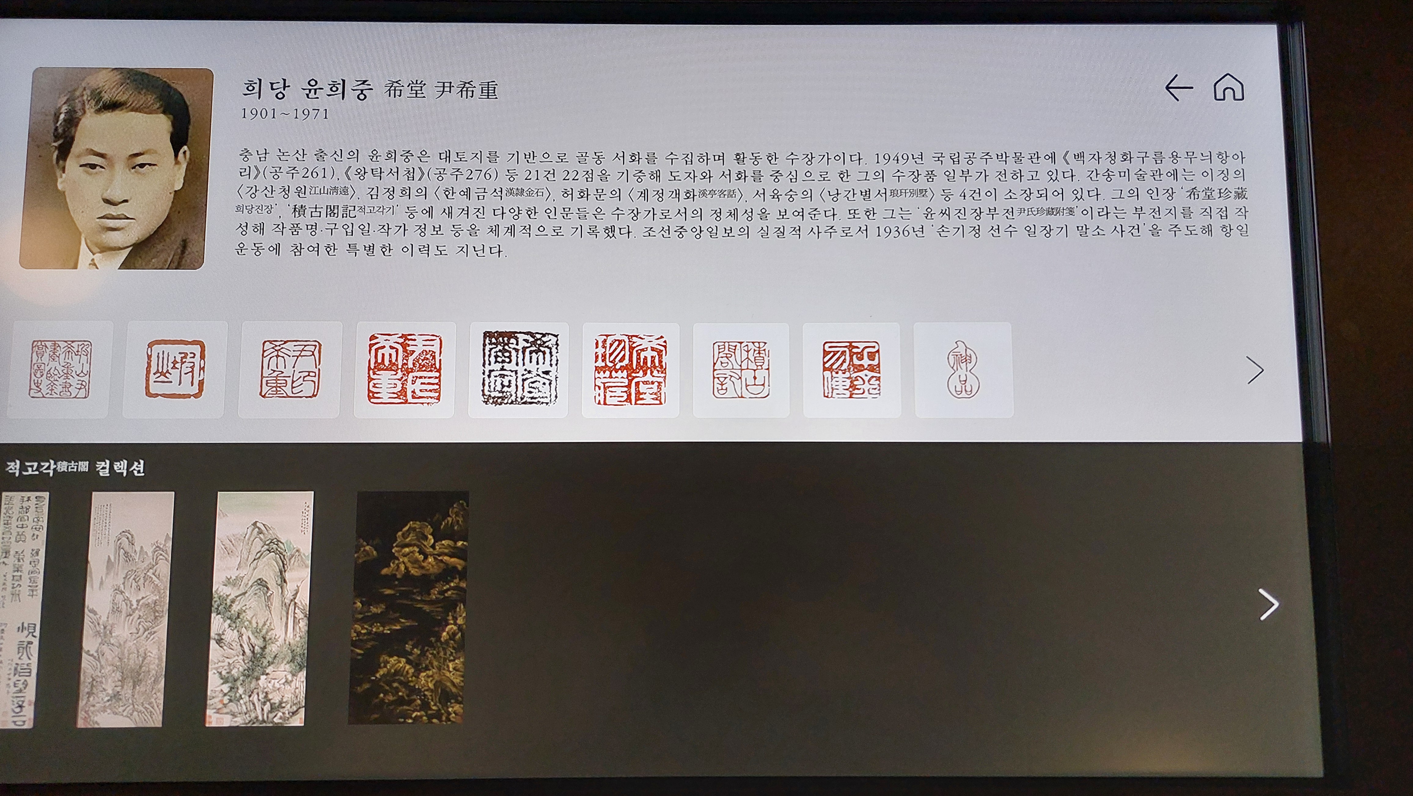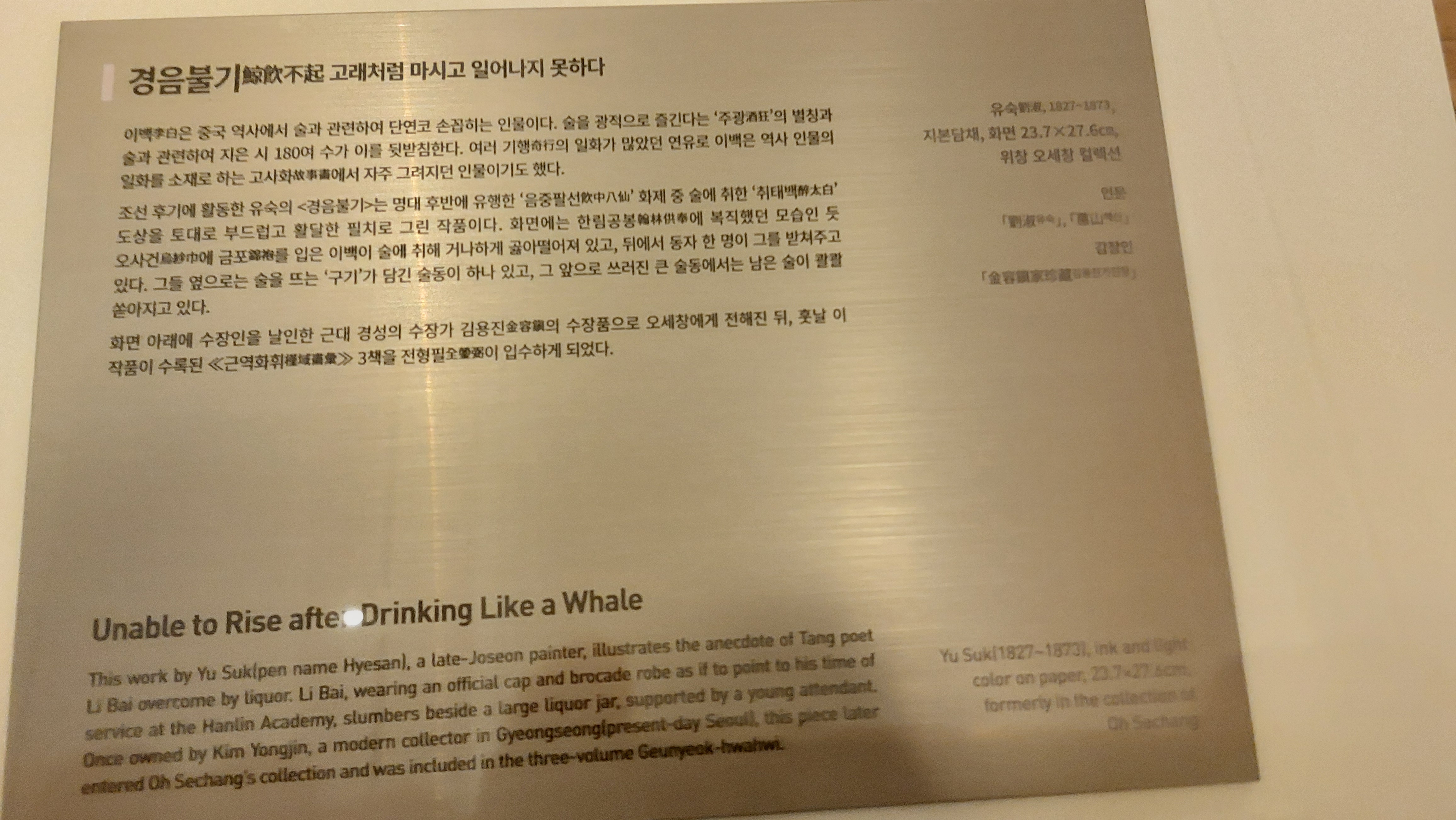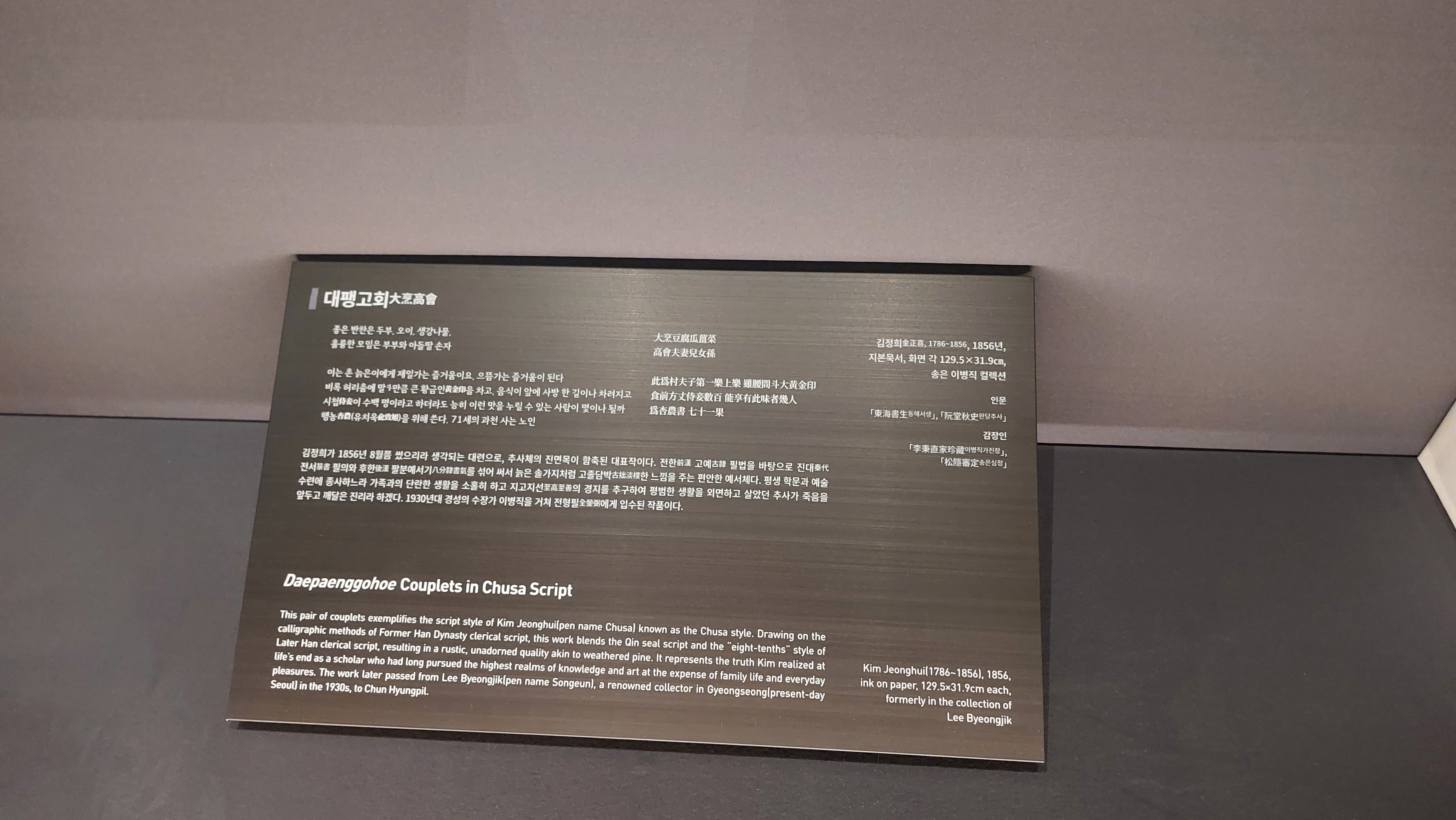친구와 둘이서 오랫만에 성북동 소재 간송미술관을 찾았다.오세창, 존 갯즈비의 컬렉션들이 간송의 손으로 넘어와 '보화비장'이란 제목을 달고 전시를 하고 있었다.소장가인 존 갯즈비의 컬렉션 처분 소식에 기와집 40채의 값에 그의 컬렉션 도자기 20여점을 사들여 우리 문화재를 지켜낸 간송의 노력은 국보급이다.완당 김정희 선생의 대련,'대팽고회'는 <완당평전>에서 익히 본 서화로 실물을 보니 눈이 번쩍한다.갯즈비 컬렉션이었던 청자기린유개향로와 원숭이연적은 일품이다.두 점 모두 국보다.간송선생의 문화보국에 대한 굳은 신념을 느끼며 관람한다.