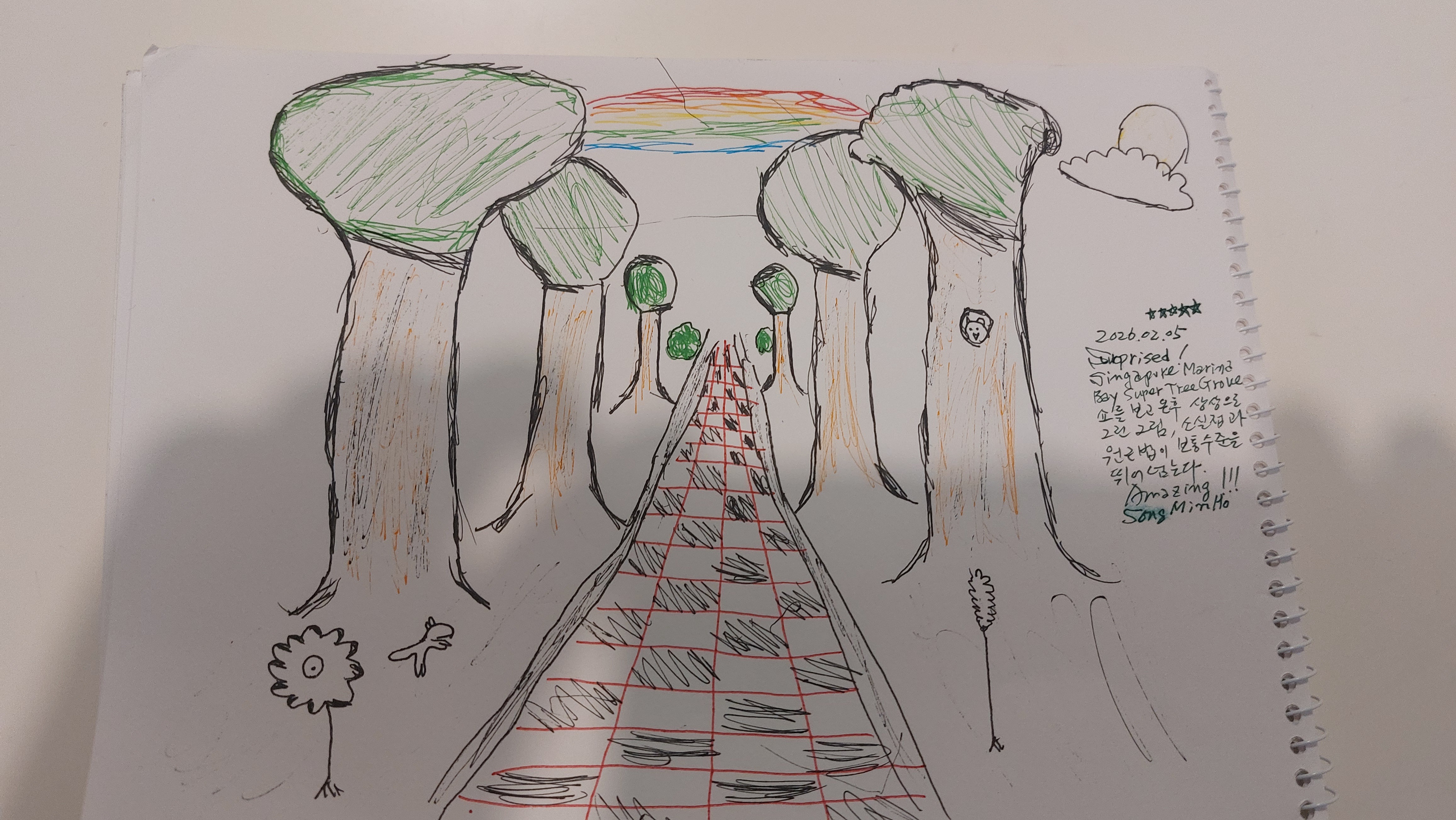 둥이1 그림 (둥이2 인물화와 싱가포르 여행지 그림)