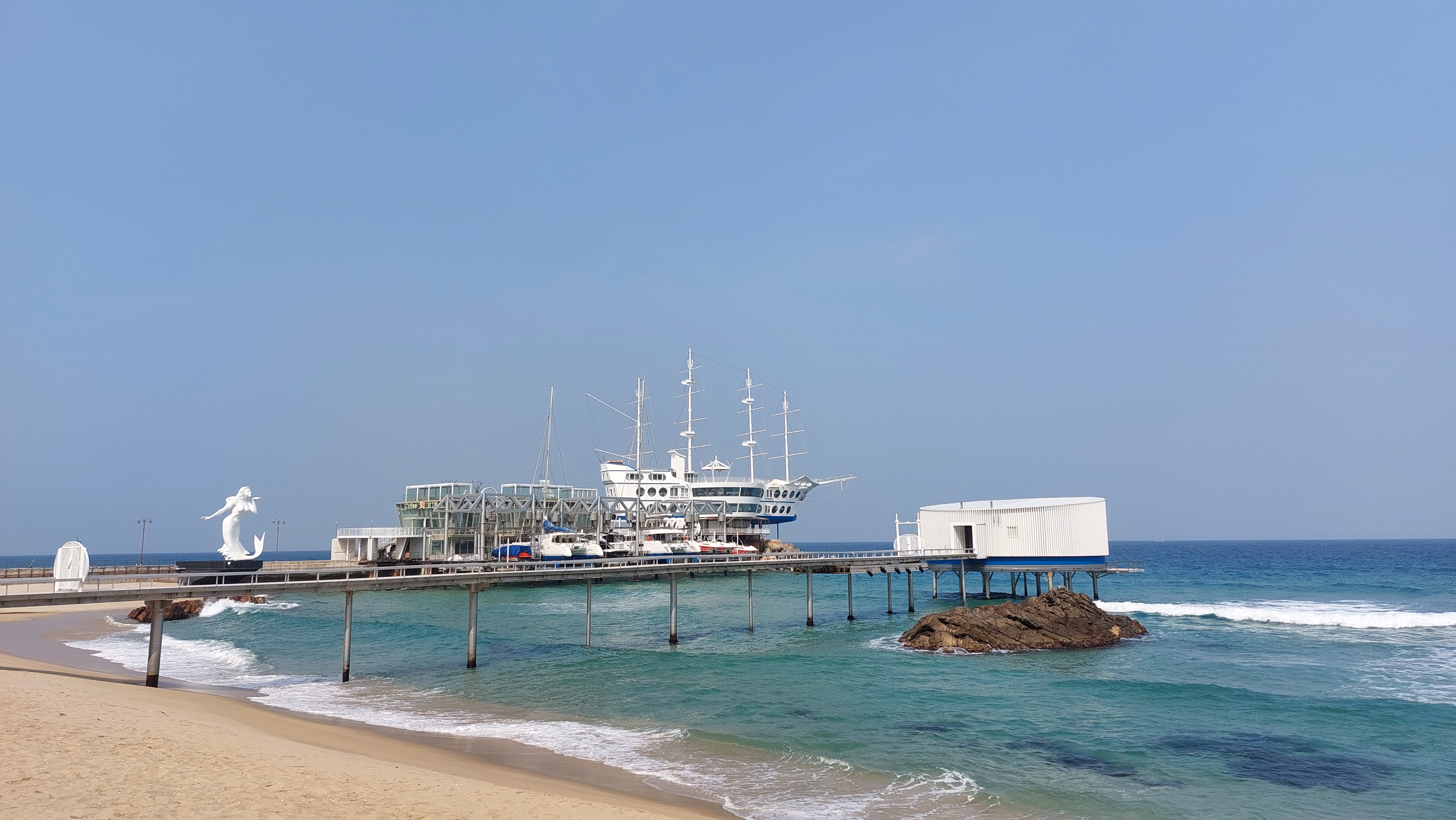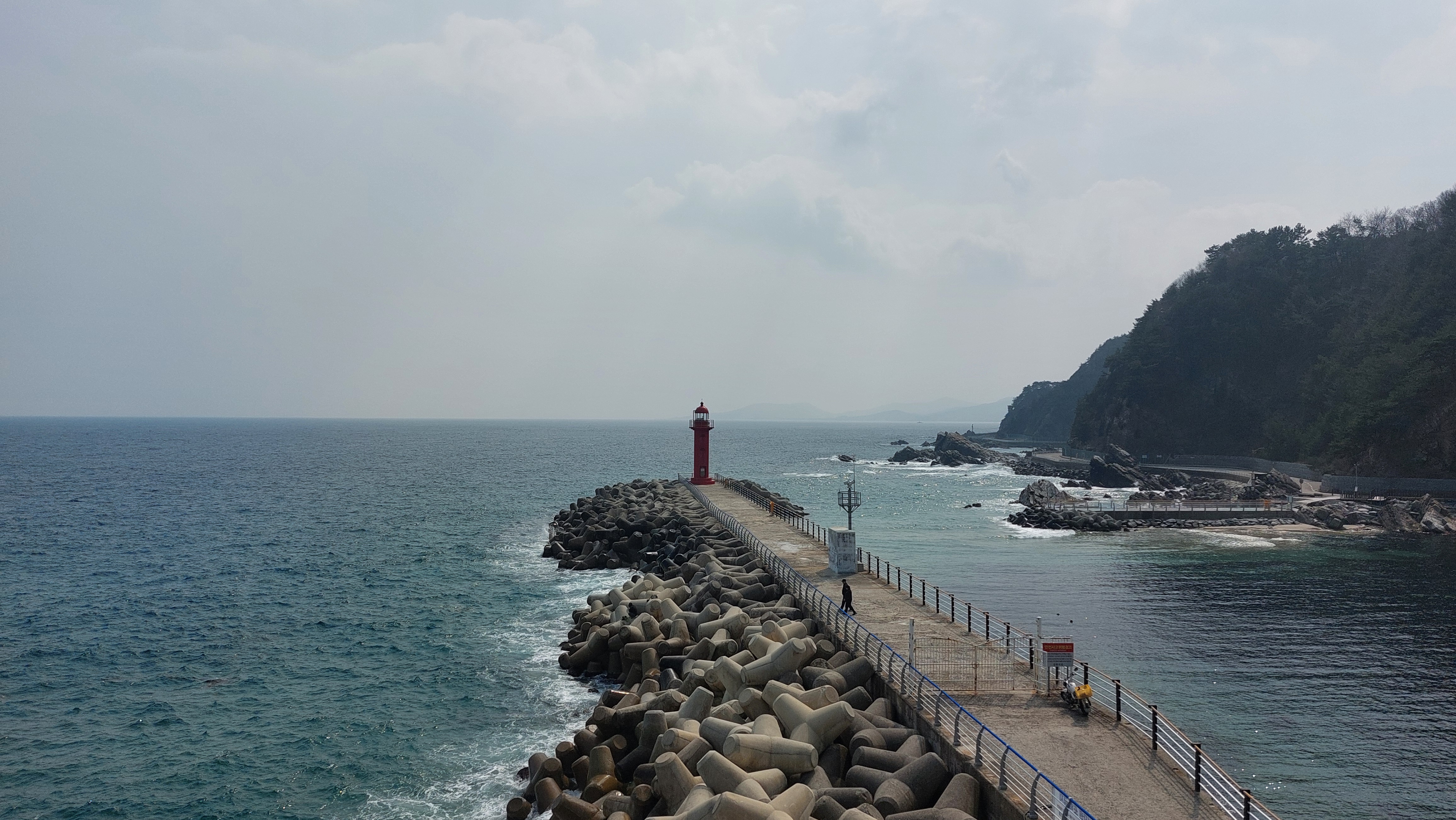 2박3일 백암온천장에서의 시간은 왜 그렇게 빨리 지나가는지? 숙소 체크아웃을 하고 동해 해변도로를 탄다.하도 많이 다닌 길이라 익숙하다.정동진을 향해 가는 길에 망양전에 들린다.망망대해를 바라보는 동해안 명소다.입구에 공사 안내판이 떡 버틴다.시설 개보수 중이란다.그래도 아쉬운 마음에 계단길을 올라 망양정 앞에 섰다.바다를 바라볼 수 없도록 공사 막장을 둘렀다.아쉬운 발걸음을 뒤로 한다.